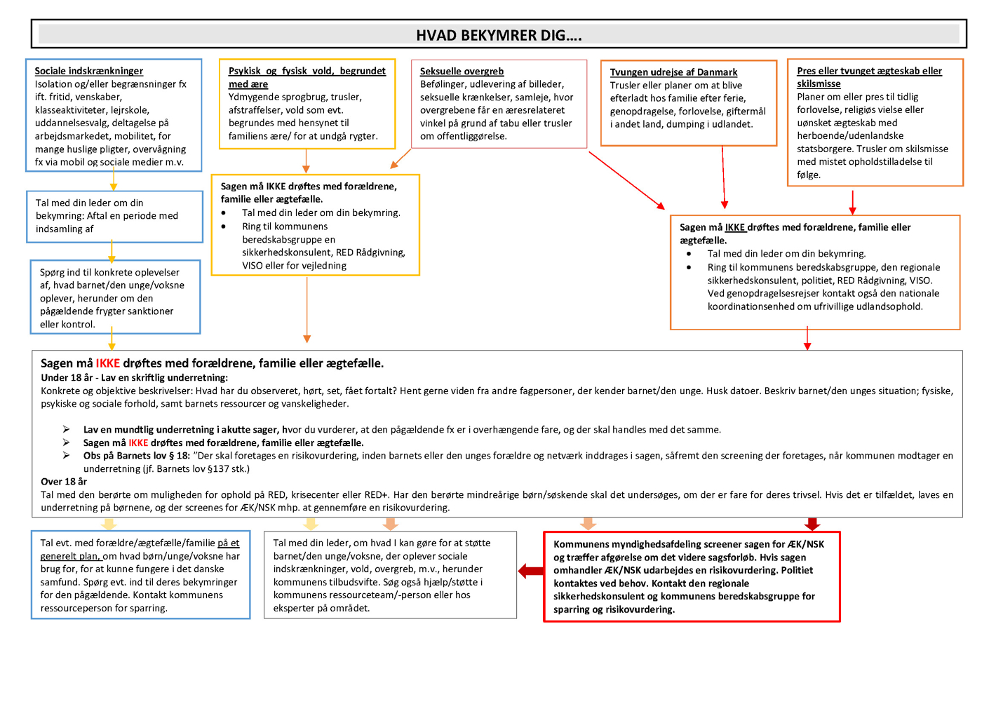 Ved bekymring om æresrelaterede konflikter og negativ social kontrol må forældre IKKE kontaktes
